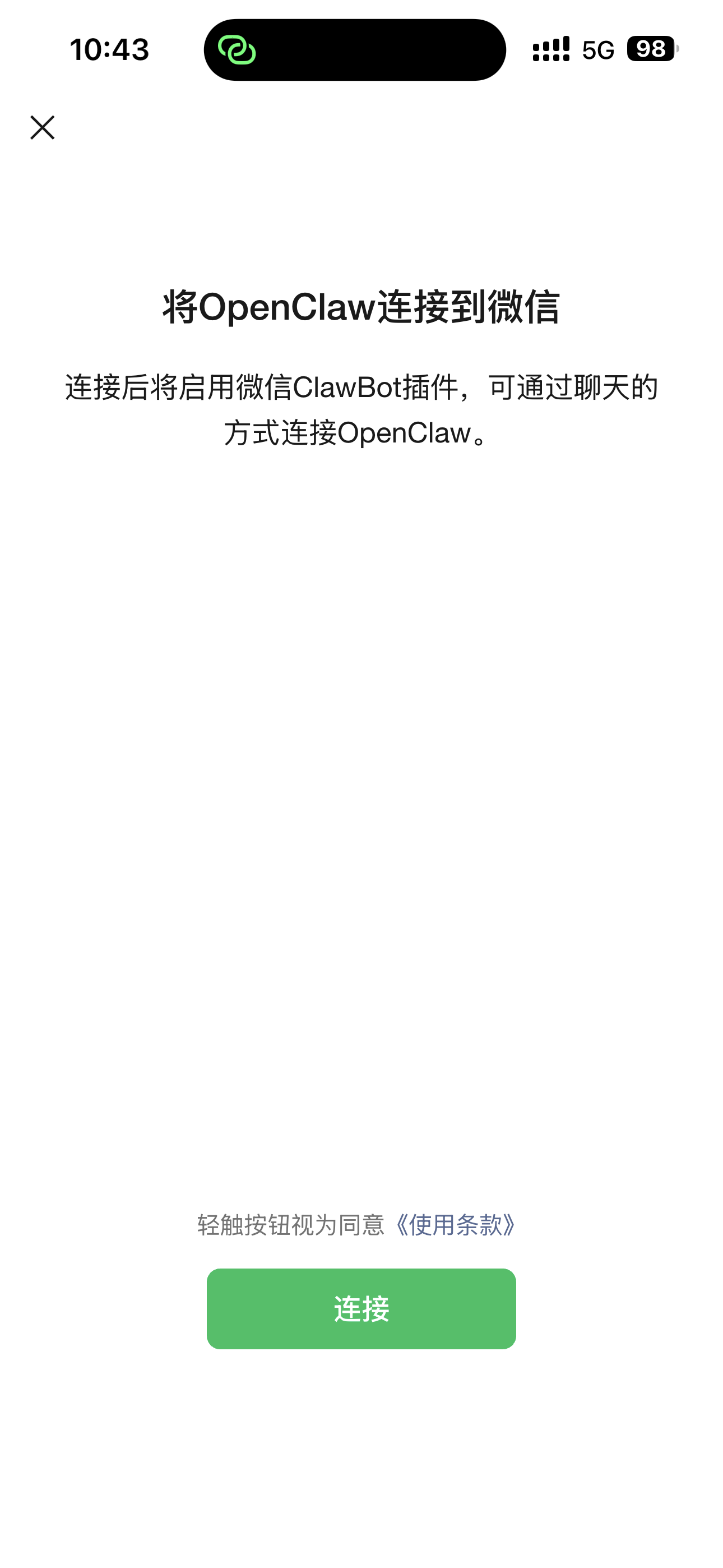 移动端微信->设置->插件中找到clawbot在openclaw的控制台执行下面命令npx -y @tencent-weixin/openclaw-weixin-cli@latest install出现二维码后使用微信扫
