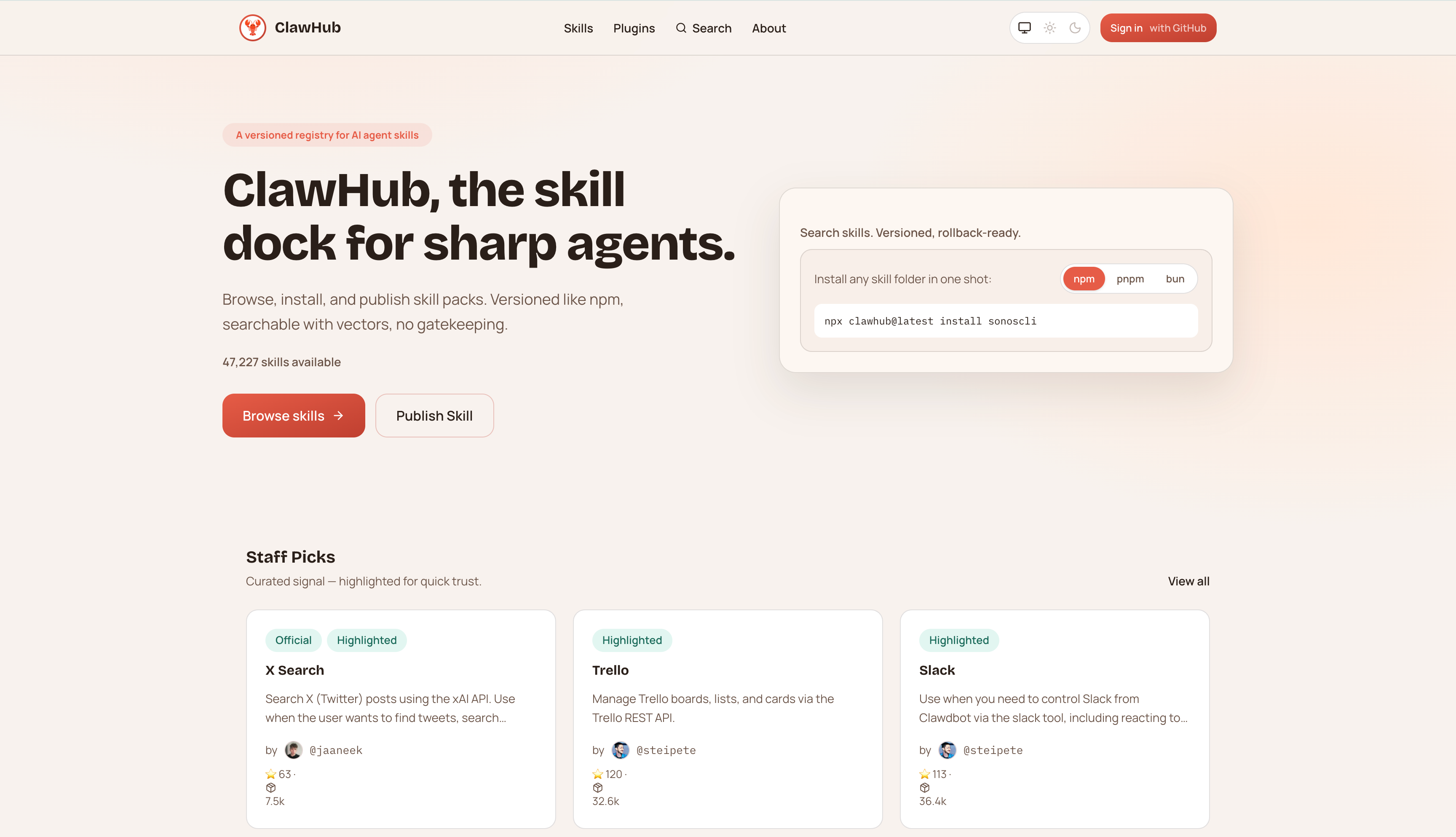 hello大家好,openclaw养虾的朋友一定知道clawhub(https://clawhub.ai/)这个东西,这个工具是openclaw官方提供的一个技能仓库,它可以让你的龙虾自己去寻找安装一些技能,扩展自己的能力边界。